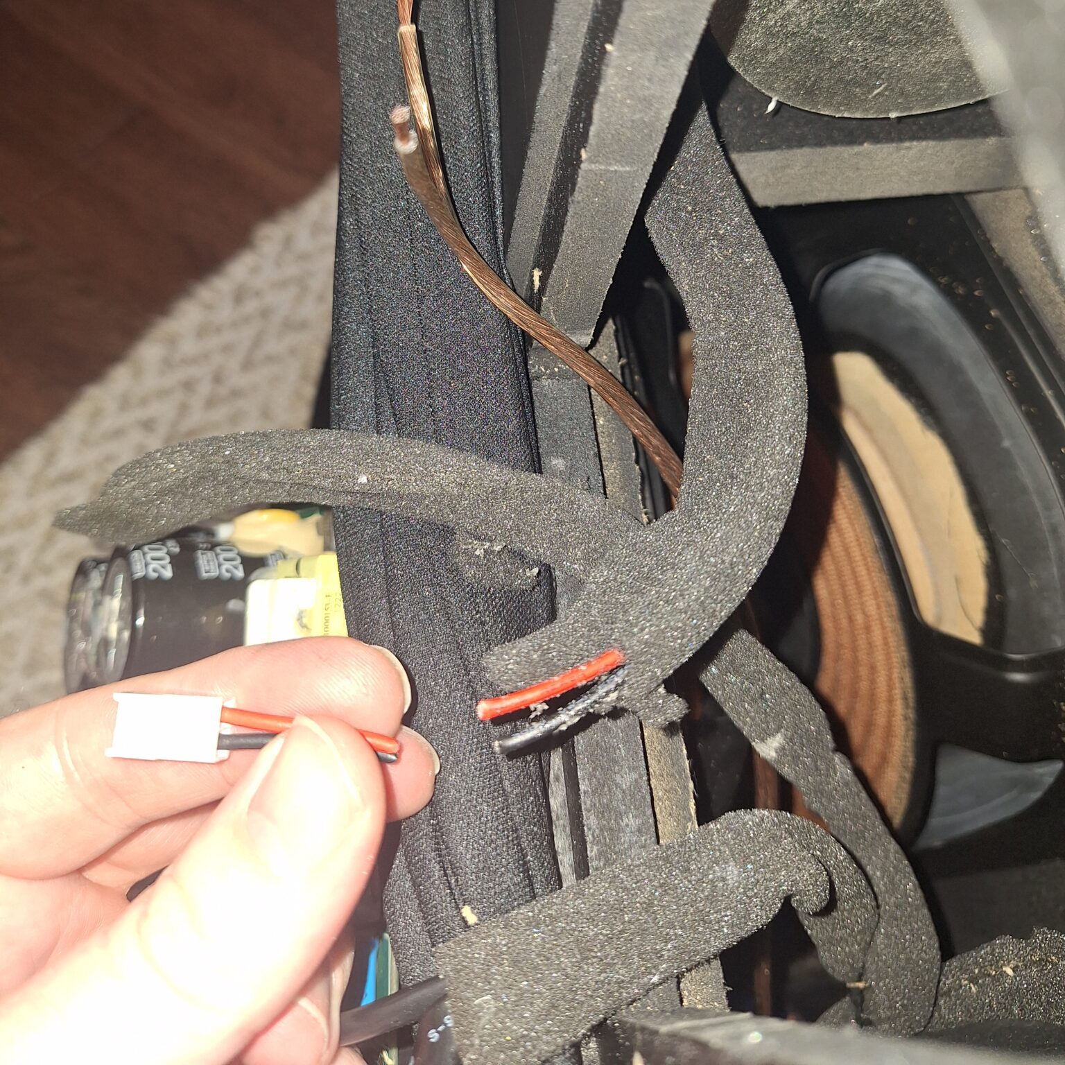 We’re back in business now! I left all the other connections in place internally, assuming they have some passive crossover circuits in there somewhere. I knew this would mostly work because the speakers always sounded great minus no bass when they were operated without external power plugged in.